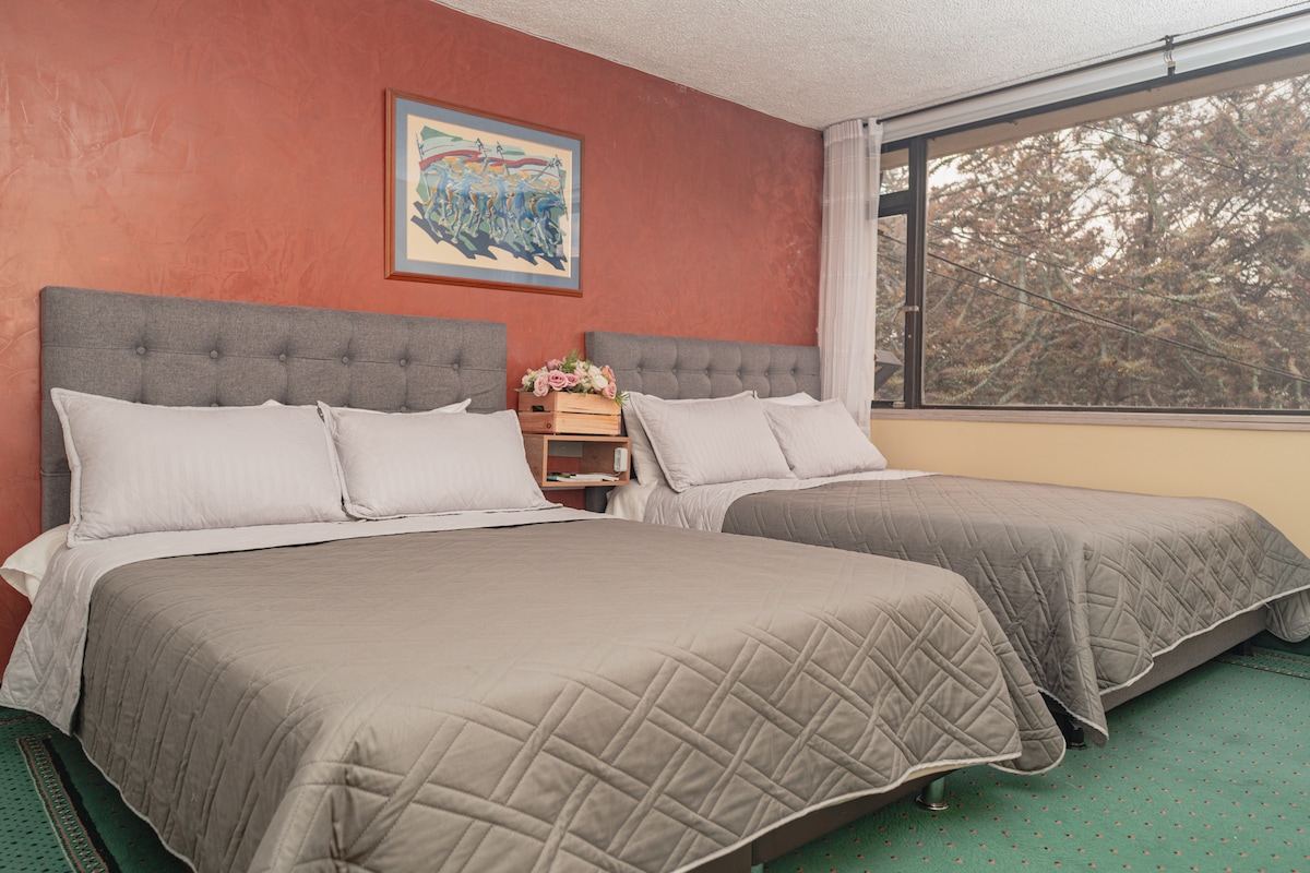 We know that traveling is an experience, whether individual or group. That is why we are here to surprise you in your travel experience, whether for business, leisure, vacation or work. Our proposal is fresh and seeks to offer our visitors a quality accommodation experience, friendly, quiet and with a comfortable, spacious and pleasant atmosphere. It has an unbeatable location, close to Corferias, C Convenciones G12, Salitre terminal, El Dorado Airport, U.S. Embassy.