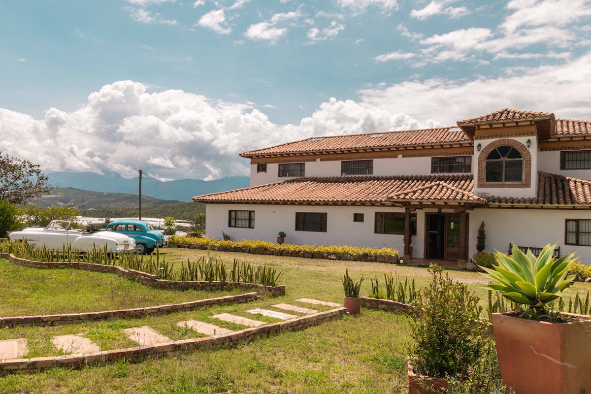 🌿 A 10 kms de la Plaza de Villa de Leyva (15 min 🚗) y ubicado estratégicamente cerca de los principales atractivos turísticos de la región. Tu habitación incluye: 🛏️ 1 cama doble ideal para parejas. 🚽 Baño privado con agua caliente. 🛁 Jacuzzi privado. 🛜 Acceso a Wi-fi y televisión satelital. 🧻 Toallas y amenidades para garantizar una estancia cómoda. 🍳 Incluye desayuno tipo americano (huevos al gusto, bebida caliente, bebida fría, pan o arepa y porción de fruta).