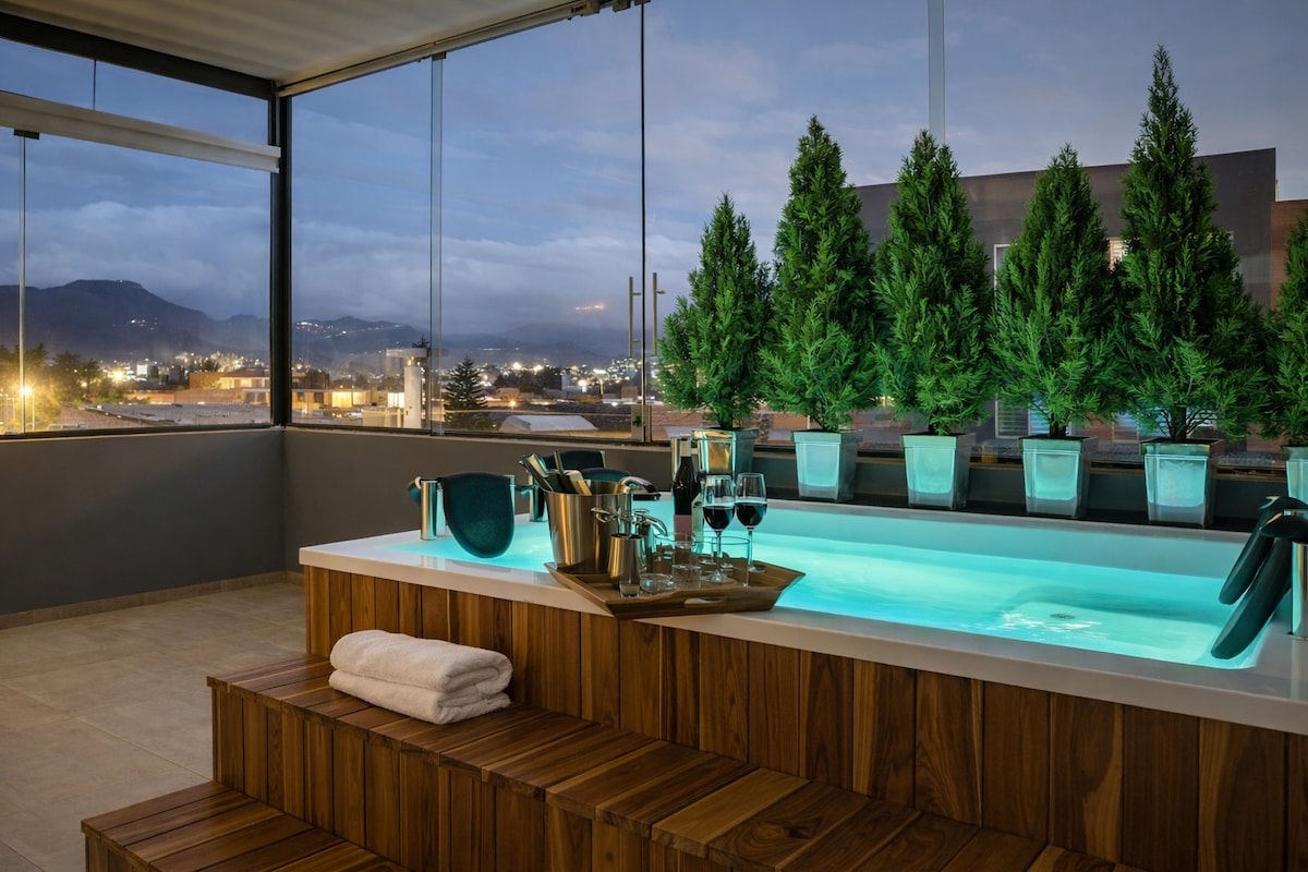 屋顶按摩浴缸顶层公寓| 2个卫生间|洗衣机和烘干机|阳台景观