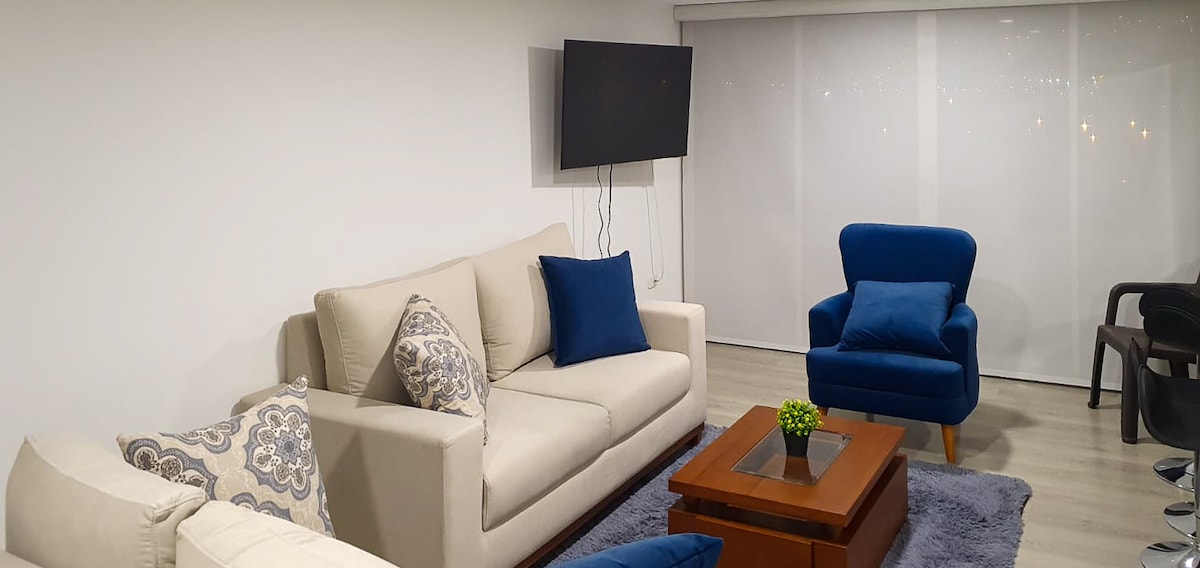 Luxury one bedroom in the most exclusive / safe area of Bogota (Chico) within walking distance from the best restaurants, shopping centers and close proximity to many businesses. Executive level accommodation with dedicated workspace, private terrace, automatic fireplace, reliable WiFi, private parking and building security. Ameneties: Enjoy the beautiful panoramic terrace with fireplace and outdoor grill. Also play squash and relax in the sauna or steam room.