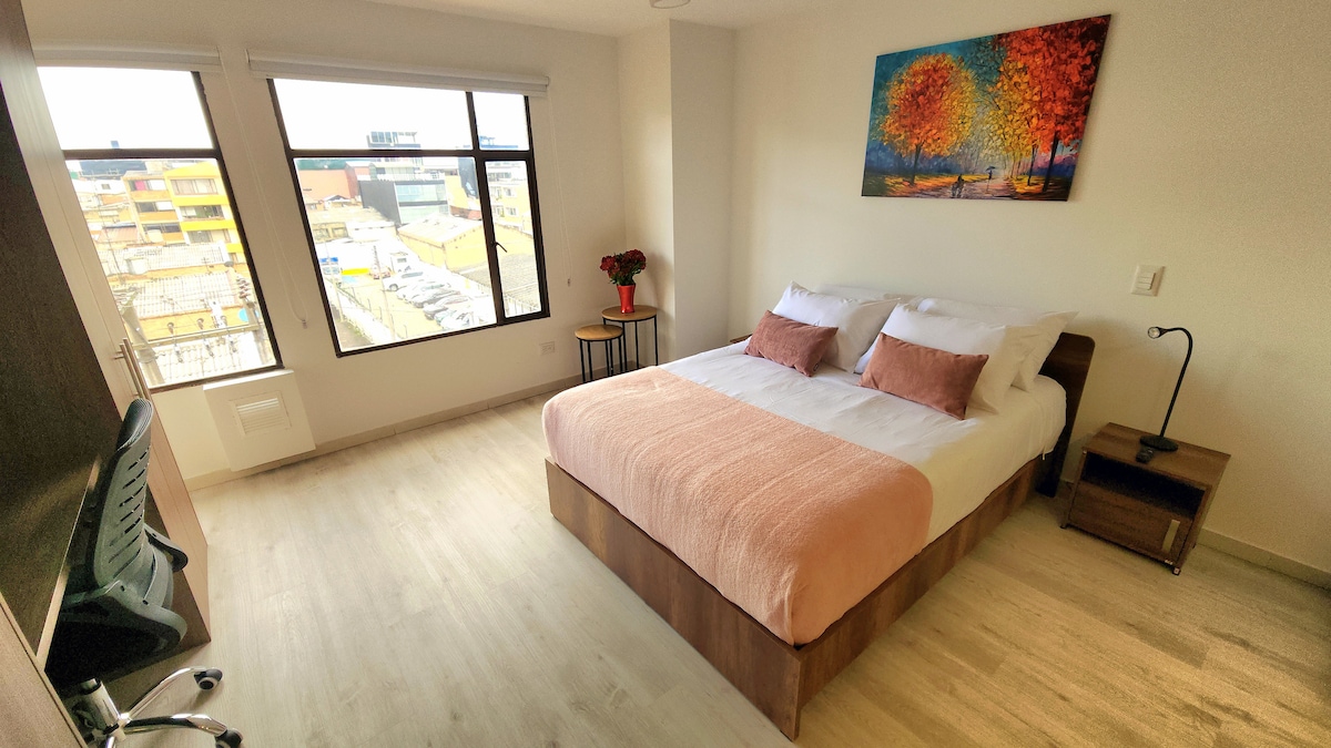 Confortable apartamento con excelente ubicación en el centro de Bogotá , cuenta con vista a los cerros de Bogotá y al cerro de Monserrate; acceso a pisicina y gimnasio en el piso 25 con una increíble vista a la ciudad. Gran variedad de restaurantes alrededor, cercano al centro histórico y lugares turísticos como el museo nacional, museo del oro, centro internacional, la torre Colpatria y al bohemio barrio la Macarena en donde hay una zona de restaurantes y galerías que no te debes perder.