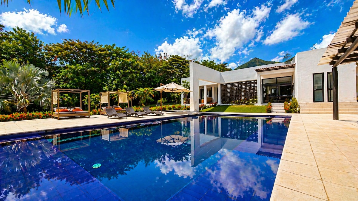 Famous Mexican Style Villa 10 min near Anapoima. Sleeps up to 17 guests!* Huge Terrace with Amazing Views of the Mountains with Full Privacy in One of The Best Climates in The World! Obsessive Attention to Detail, Luscious Private Tropical Gardens, Amazing Private Pool, TV, Audio, Gas B.B.Q, Cookware, Tableware, Linens & Towels. Team of House Keeper and Helper Living in the Property. Don’t leave your trip to chance. TopSpot®—10 years of experience, trust, and happy stays in the finest homes.