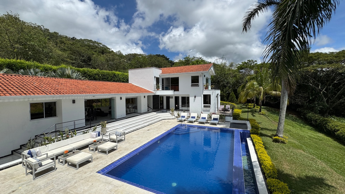Beautiful modern house within a condominium with spaces for walks, very bright, with high ceilings, bathrooms with natural light to see the sky while you shower and ideal for relaxing. WiFi, Netflix, Air conditioning in main room, powerful fans in other rooms and areas, private structural pool, large back garden with forest. Parking for 3 cars, one of them covered. Laundry area and covered terrace. 15 min. to Carulla Market. Delivery for everything in the area.