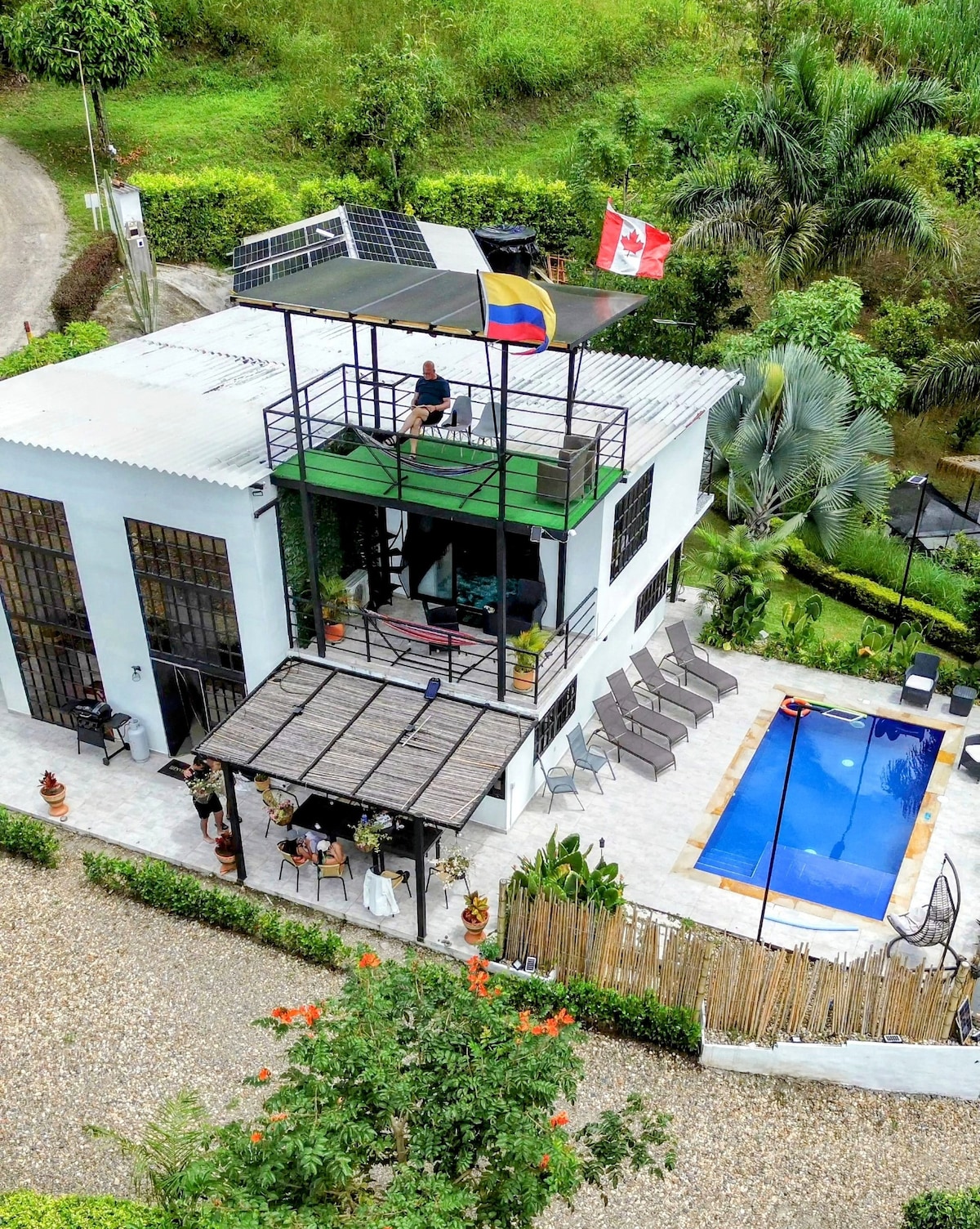 Halfway between Bogotá and the warm light of Melgar, there’s a chill hideaway where nature and good design come together. A modern, private spot built for real rest. Spend your days by the saltwater pool, grill something outside, or kick back for movie nights with an awesome sound system. Starlink keeps you fast and online, even when everything around you tells you to slow down. Perfect for couples, families, or anyone who just wants to unplug — without giving up the good stuff.