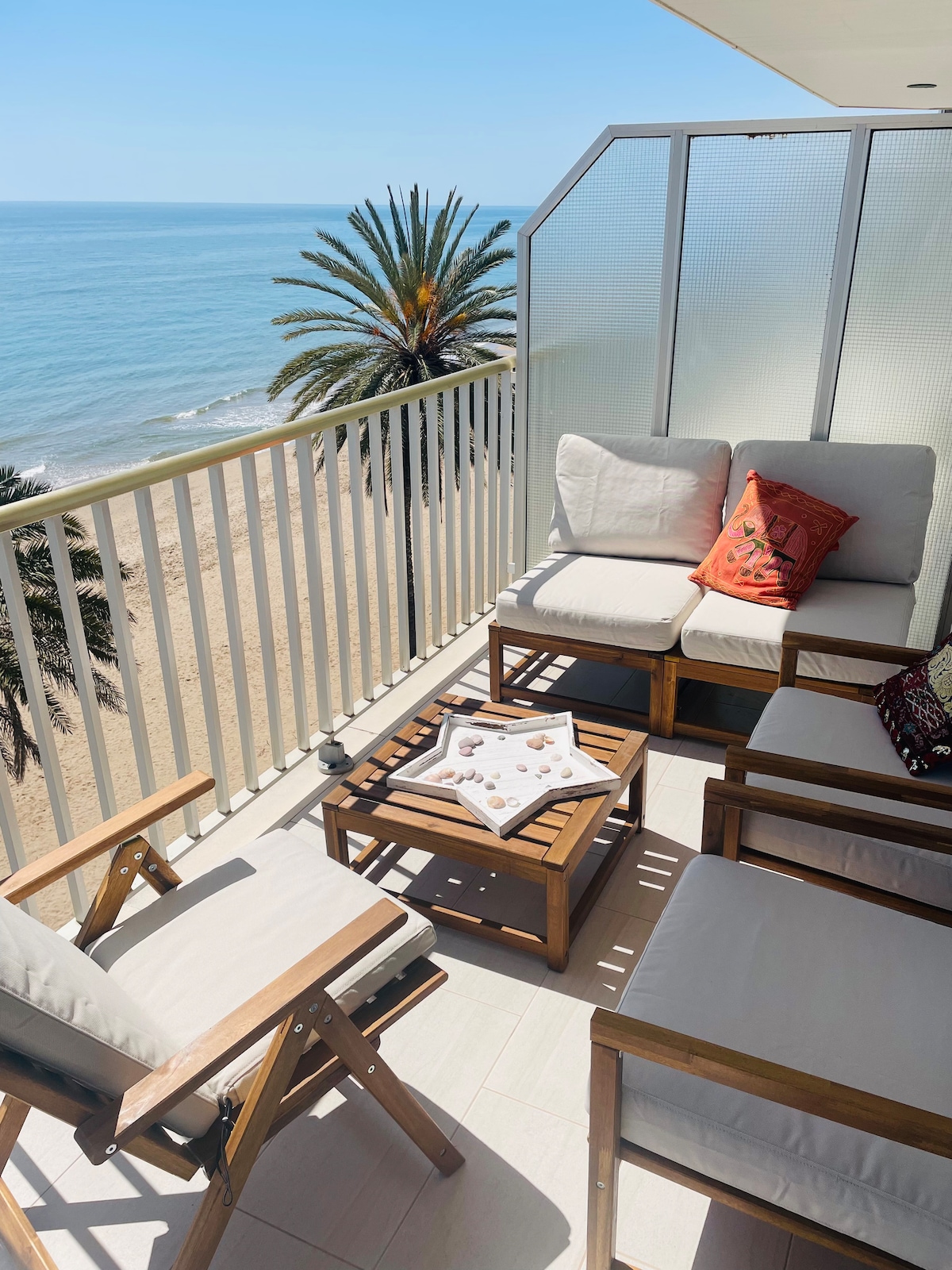 A home away from home, this beautiful beachfront apartment has everything you need for a perfect holiday. A nice morning coffee watching life go by, with the Mediterranean Sea right in front of you, will give you the energy you need to enjoy Sitges beaches. After a few hours in the sun and a luxurious shower, you can have an amazing gelato next door to enjoy a nice walk in the promenade. Hungry?There's plenty to choose from! Shops and restaurants will make the perfect day for you and your loved