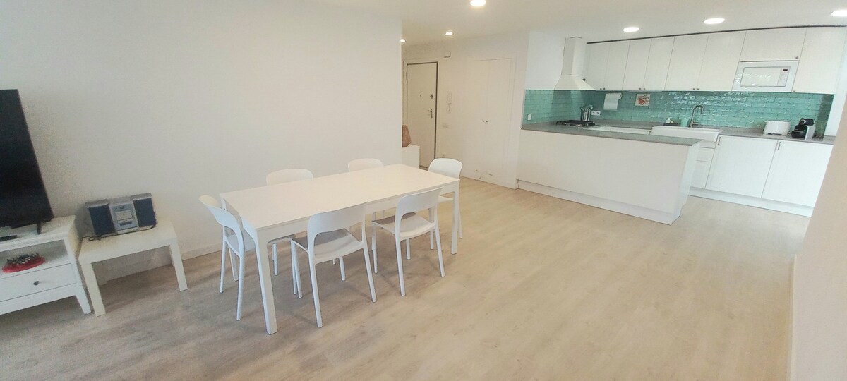 l CALAFELL 5 BEACH with WIFI and AC Air Conditioning, Soundproof windows. The apartment 75 mt from the beach Calafell, with blue flag. It consists of: 1 bedroom with double bed 150 * 190 and box spring tempur, Air AC Fujitsu, full dining room, sofa bed 2 people, folding, and cot park if needed, kitchenette, bathroom with shower-WC and washing machine. The apartment with a large terrace on a sixth floor with sea and mountain views. Theme parks of Port Aventura and Ferrari Land just 40 km away.