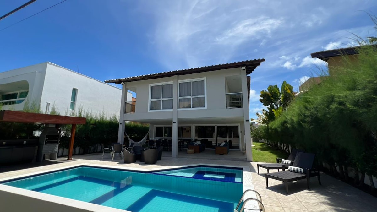 Casa em condomínio em Porto de Galinhas. A casa possui piscina, churrasqueira a carvão (giratória elétrica), sinuca, totó e mesa de jogos. Na sala Tv de 65 polegadas com SKY e acesso à internet, som JBL, WI-FI. São 4 suítes no 1º andar, todas equipadas com ar condicionado split e TV, e 1 quarto menor no térreo (próximo a cozinha) com ar. Acesso de pedestres à praia do Cupe, a uma distância de 200m. Garagem para 2 carros, podendo estacionar mais veículos na área externa. Cobramos o uso da energia