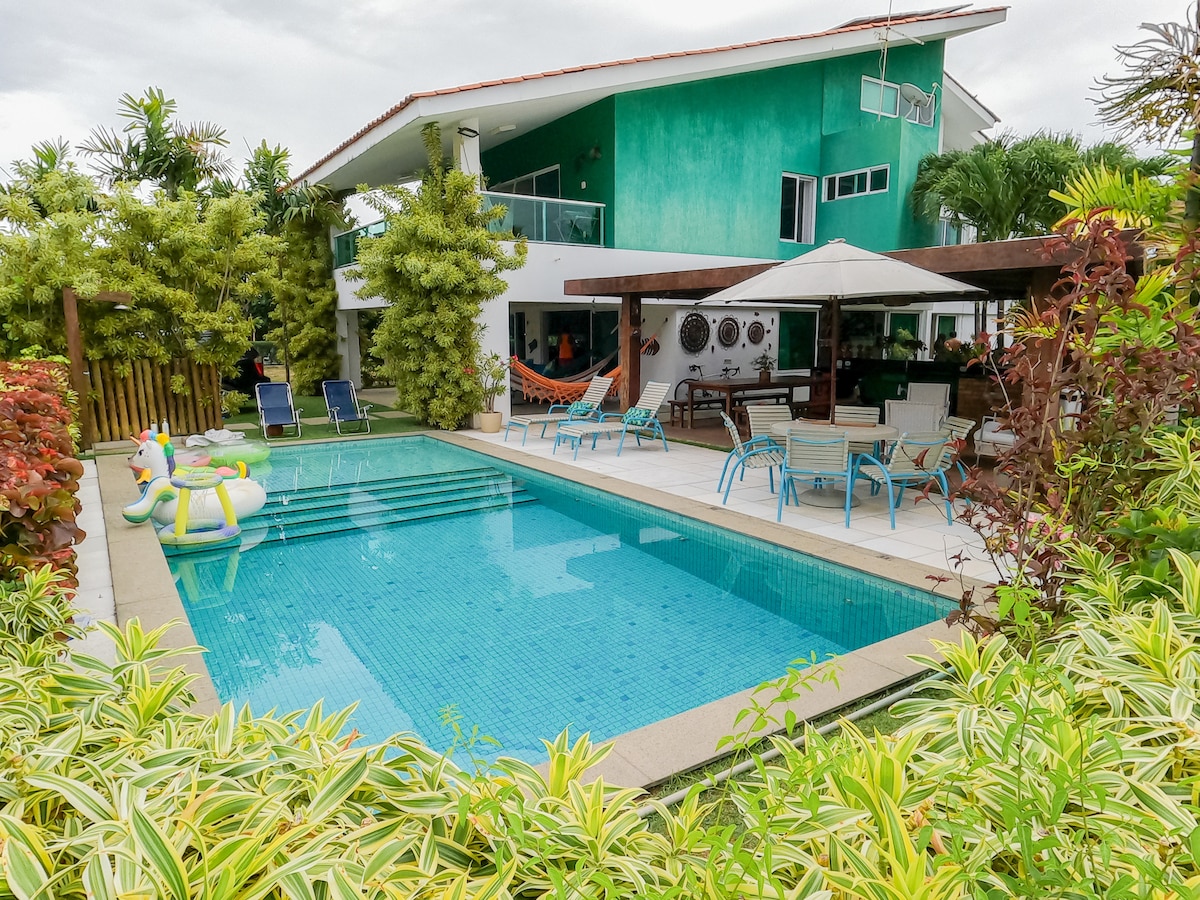 Bangalô novo de frente para o mar com 7 quartos mais um quarto de serviço, piscina privativa, varanda gourmet, churrasqueira. Excelente lugar para férias em família inesquecíveis. Lugar ideal para quem procura conforto, paz e tranquilidade com segurança e estrutura completa de condomínio (pista de corrida, bicicleta, academia, quadra poliesportiva, de tênis saibro, beach tennis, cinema, brinquedoteca, sala de cinema, sala de jogos, restaurante, conveniência, recepção 24h, equipe de manutenção).