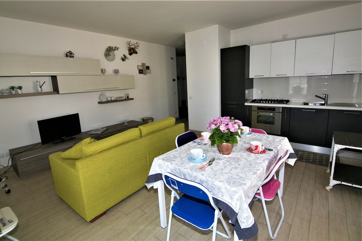 Lussuoso appartamento situato a soli 30 metri dalla spiaggia, consigliato per un’occupazione ideale di 2 adulti e 2 bambini per garantire il massimo comfort durante il soggiorno. L'alloggio dispone di: - terrazzo con vista mare, arredato con salottino e tavolo da pranzo; - camera matrimoniale con bagno privato, soggiorno con divano letto (nel soggiorno non sono presenti le tapparelle); - 2 smart TV, WI-FI e aria condizionata in ogni ambiente, macchina del caffè; - 1 posto auto.