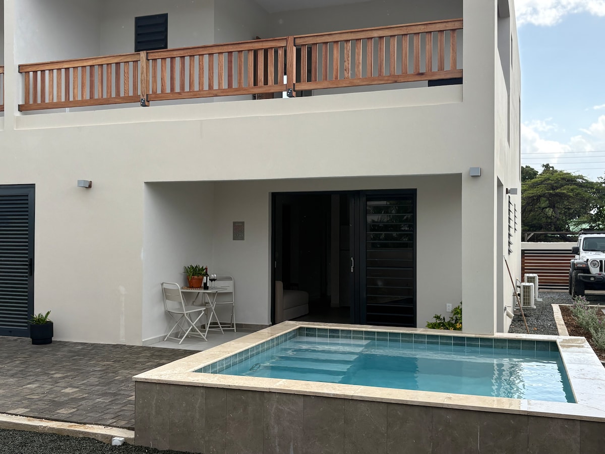 Enjoy a stylish experience at this centrally-located home. Experience the ultimate getaway in this modern, fully air-conditioned and fully equipped, newly built luxury home for 4 guests. Located in a gated community with 24/7 security, it offers a private pool and outdoor kitchen. Perfectly situated across from the iconic Mambo Beach, just a 5-minute walk to beaches, restaurants, nightlife, Dolphin Academy, shops, gym, padel courts and more. The city center is only a 5-minute drive away.