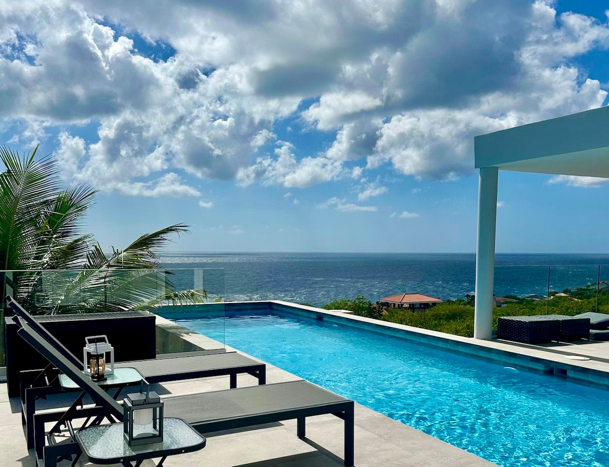 If you've dreamed of an affordable, private villa with amazing views, a pool, and access to a private beach; look no further. Villa Bon Bini is perched on the highest part of the hill overlooking the ocean at Cas Abou resort. It's tucked away, surrounded by a lush tropical garden. The home is fully equipped with everything you'll need for long relaxing days beside the pool with an expansive ocean vista.
