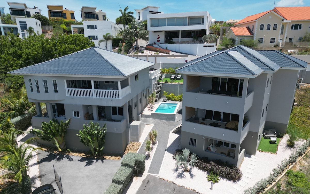 Modern, centraal gelegen in Bottelier, een heerlijk zwembad, uitzicht over het eiland en altijd wind. Een aantal karakteristieken van dit appartement van 65 m2. Bottelier is perfect gelegen tussen Zanzibar (Jan Thiel) en Mambo Beach in en zijn de zoutpannen op 5 minuten lopen. Het appartement is onderdeel van het mini resort: Casa Don Pedro. Het is op de berg van Bottelier gebouwd waardoor er uitzicht en altijd wind is. Verder is er een fijn zwembad, een relax area en een groene tropische tuin.