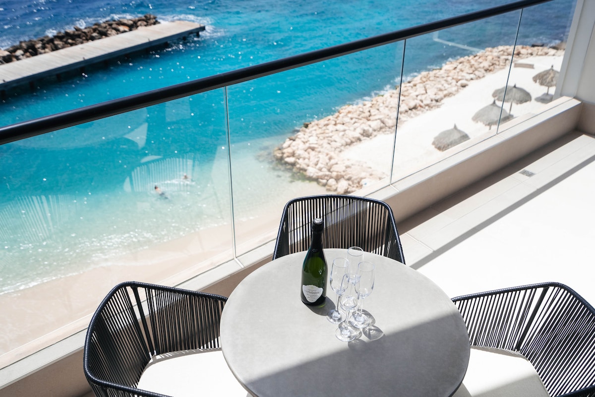 This new 2-suite condo is in the upscale ONE Mambo Beach with fantastic ocean views. Its remarkable beachfront location is right on Curaçao’s famous Mambo Beach and boulevard, with white sand and the turquoise Caribbean Sea. You’ll also find the best shopping, spots for coffee and drinks, delicious dining, exciting events, and trendy parties. ✔ 2 Comfy BRs ✔ On Mambo Beach ✔ Full Kitchen ✔ Large balcony ✔ Smart TV ✔ High-Speed Wi-Fi ✔ Residence Amenities (Pool, Pkg) See more below!