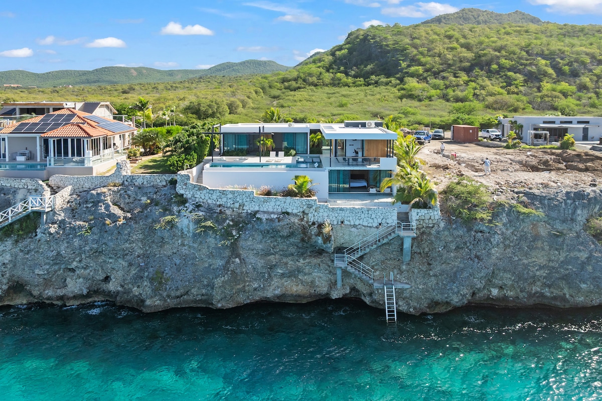 Overseas sits on a clip overlooking the turquoise Caribbean sea. The villa is designed to take in its beauty from every room in the house. Enjoy the scenery while sipping a drink in the infinity pool or venture down the private stairs to snorkel in the ocean where you can enjoy the company of sea turtles and dolphins on a lucky day. Adventure lovers are spoiled with world class diving spots and lush nature reserves in the vicinity. Just be back in time to admire the sunset from the pool deck.