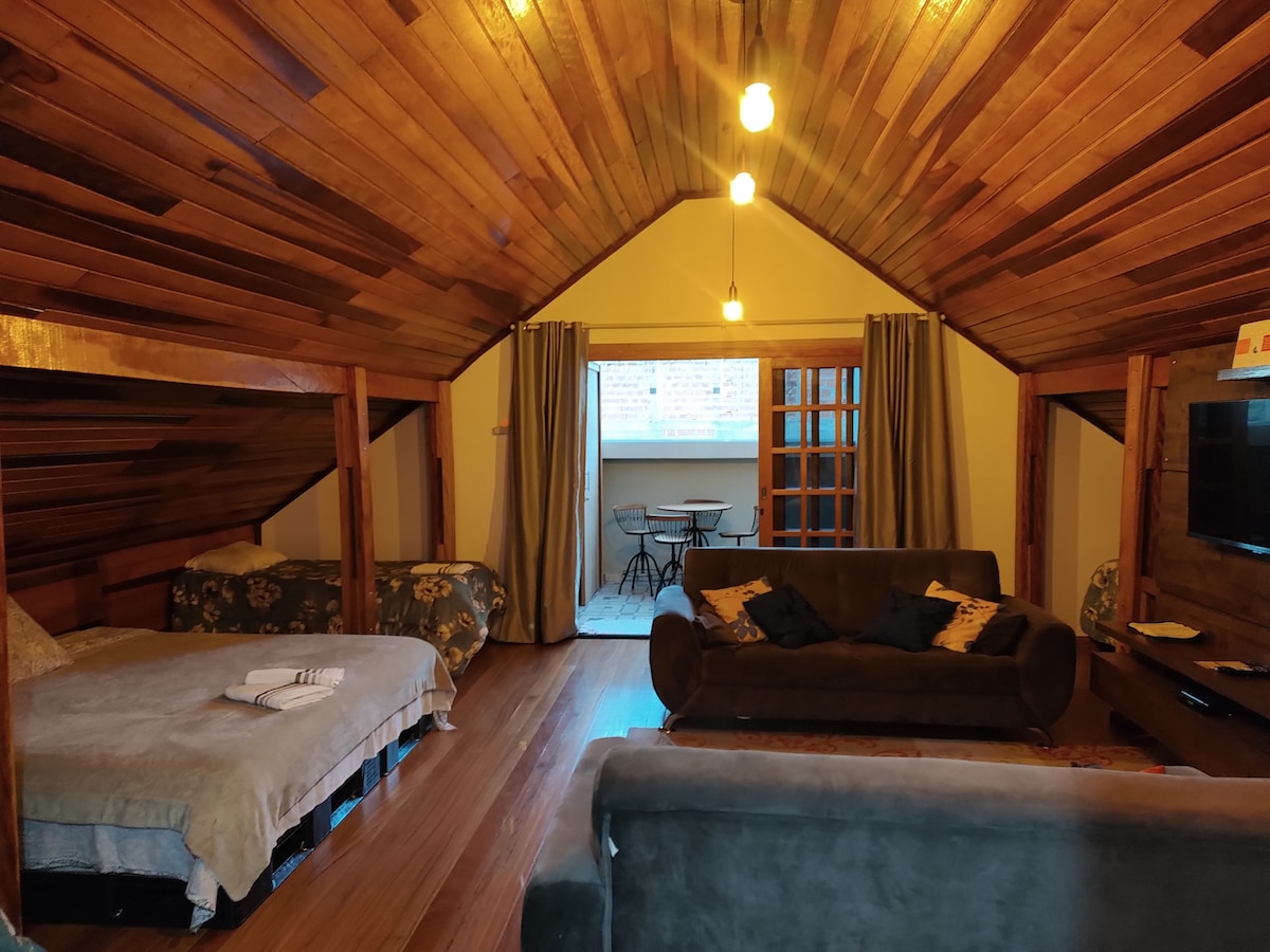 Chalé Climatizado com estilo e conforto, próximo ao aeroporto, contorno acesso as praias e centro de São José dos Pinhais No chalé você e seus acompanhantes poderão desfrutar de uma estadia tranquila e aconchegante.