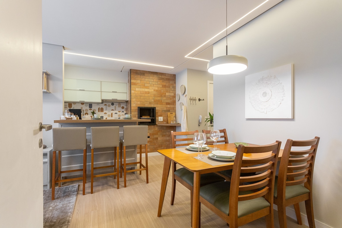 Curta uma experiência de conforto e bem-estar neste apartamento de alto padrão, muito bem localizado. O prédio oferece piscina aquecida, jacuzzi, rooftop e academia. O espaço possui estacionamento coberto, portaria 24h, ar-condicionado na sala e no quarto. Cama king size (reversível em duas de solteiro), sofá-cama possibilitando acomodar até mais duas pessoas, totalizando 4 pessoas no espaço, churrasqueira na sacada e comodidades pensadas para uma estadia perfeita.