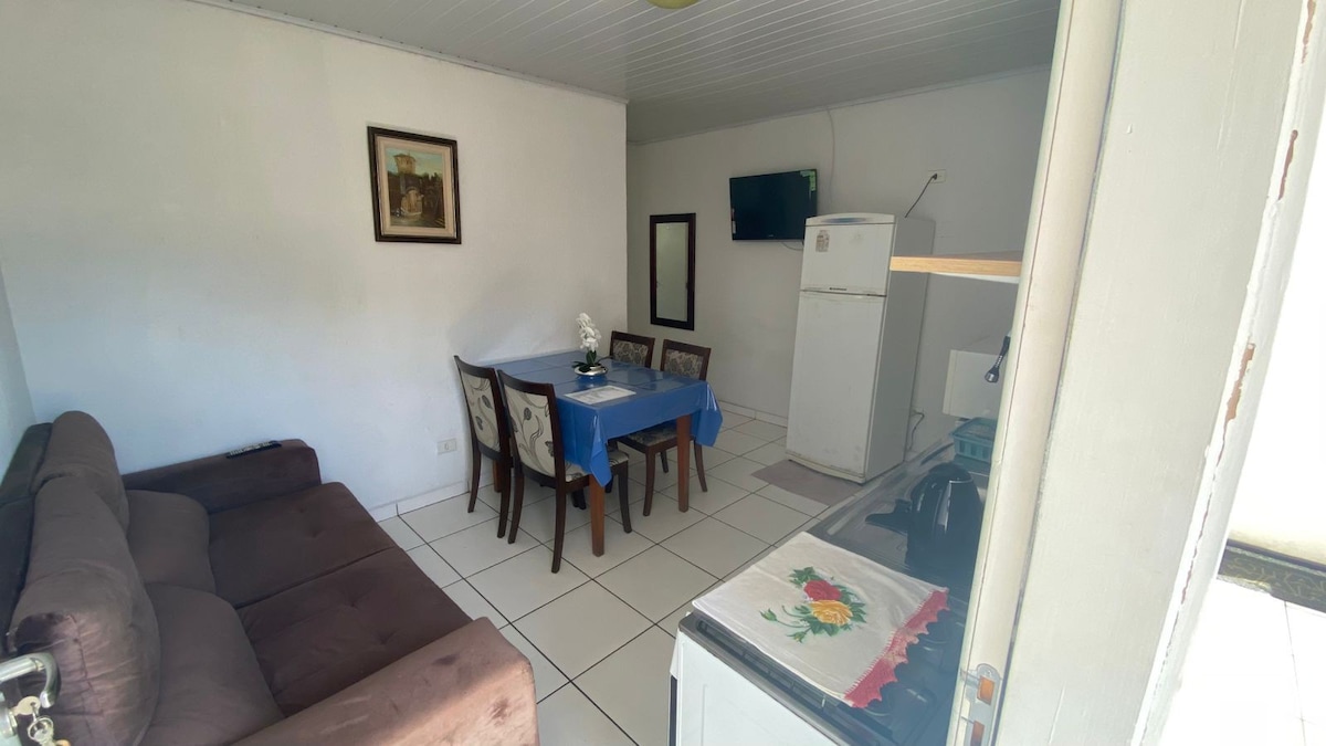 Conforto, aconchego e descanso. Tudo isso e muito mais com toda privacidade e tranquilidade que você precisa para melhorar sua experiência em Curitiba. Na acomodação oferecemos toalhas, fronhas e lençol (já estarão colocados nas camas), cobertas, 2 rolos de papel higiênico, 1 sabonete para banho, 1 shampoo, utensílios de cozinha (pratos, copos, panelas, pano de prato e detergente). **NÃO EFETUAMOS TROCAS DO ENXOVAL DURANTE A HOSPEDAGEM. Aceitamos pet dentro do imóvel e não no quintal.