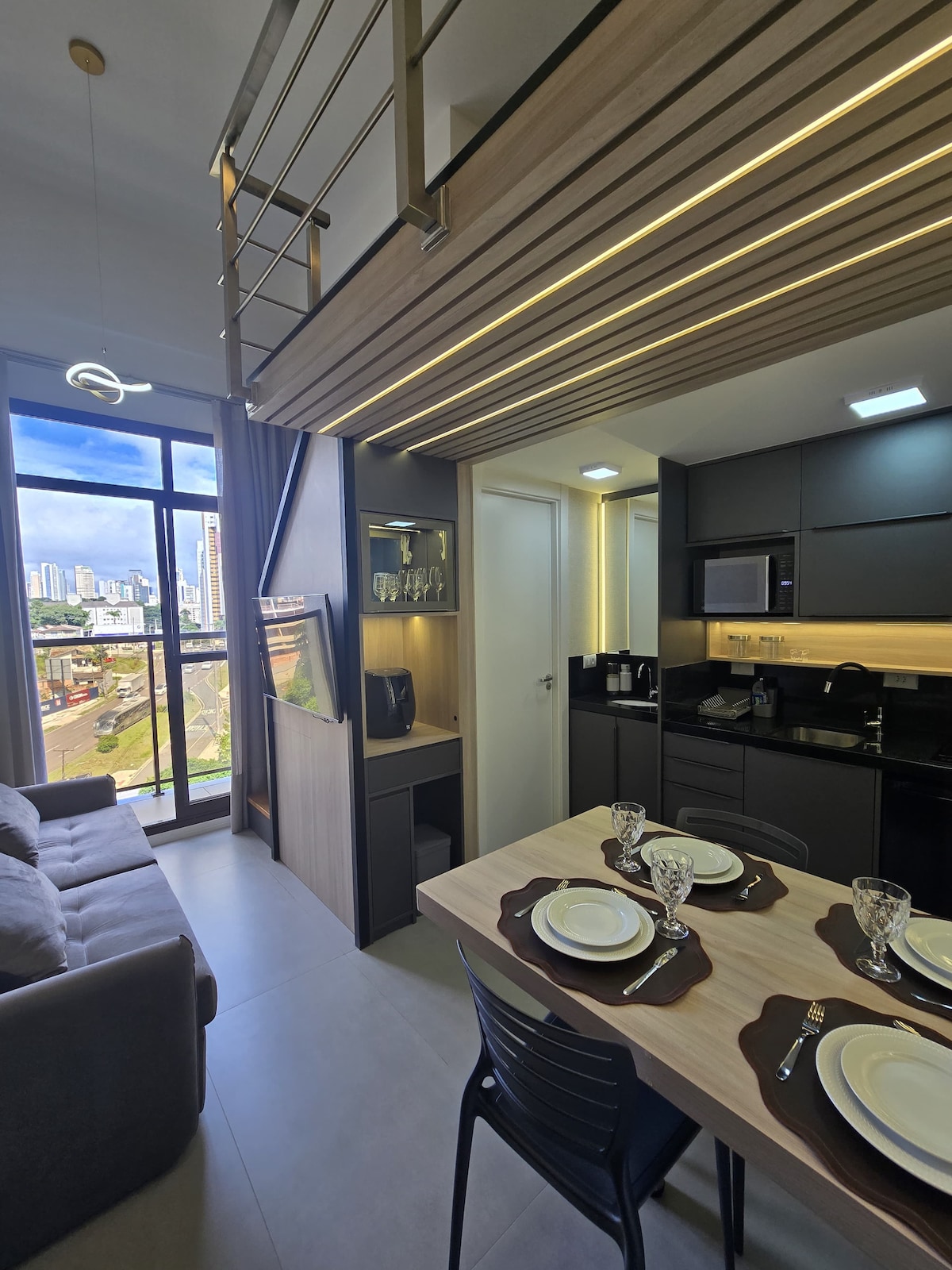 现代单间公寓,带阳台和城市景观!