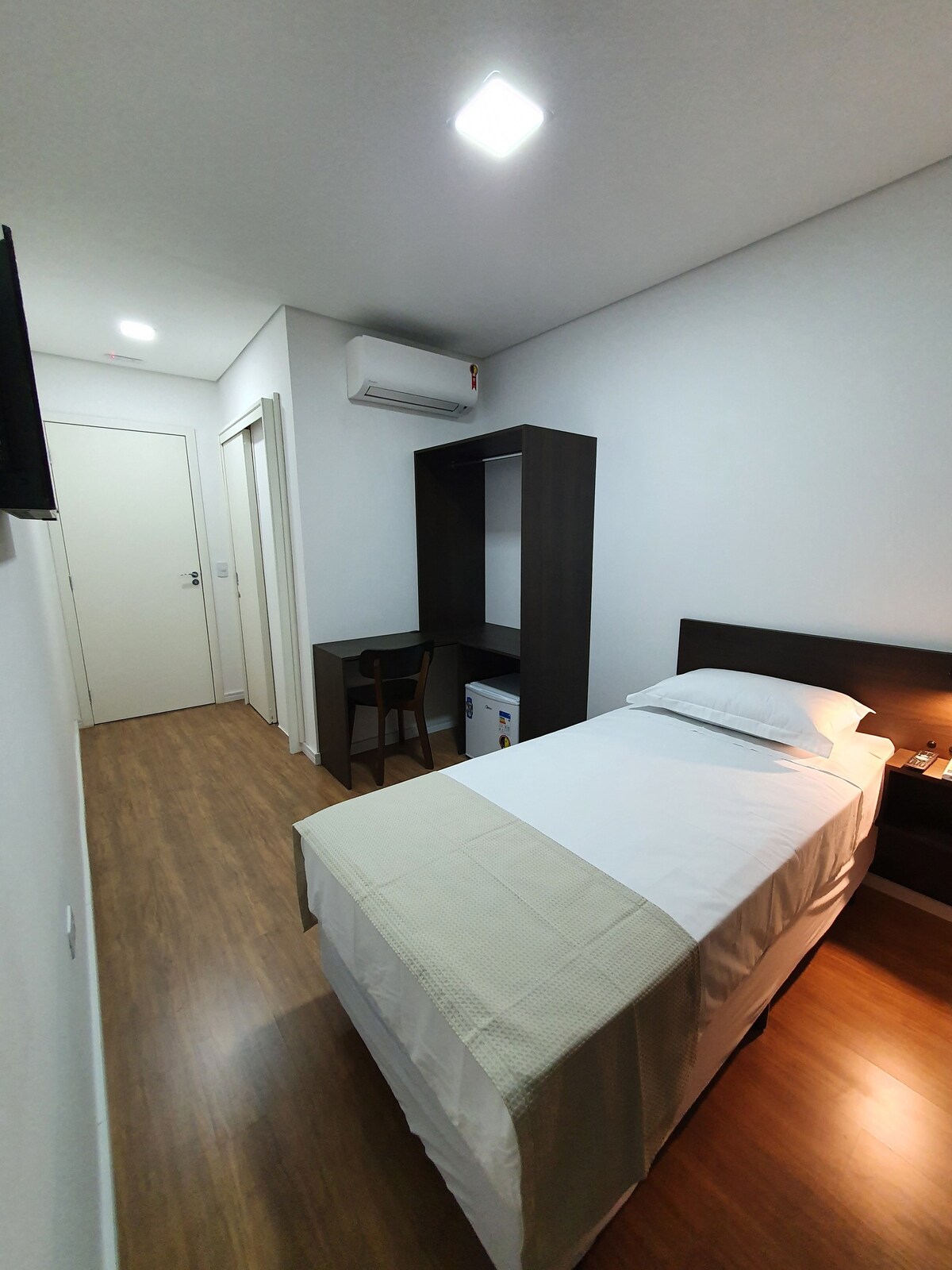 O Hotel Carmel oferece conforto e praticidade em um ambiente familiar e moderno. Localizado em uma região privilegiada, próximo ao aeroporto Afonso pena. Perfeito para viagens a negócios ou passeios em família. Hotel em São José dos Pinhais com ótima relação custo-beneficio, oferecemos café da manhã e estacionamento privado. Suíte com Cama Queen + Cama Solteiro, TV, Frigobar, Ar Condicionado e Wi-fi.
