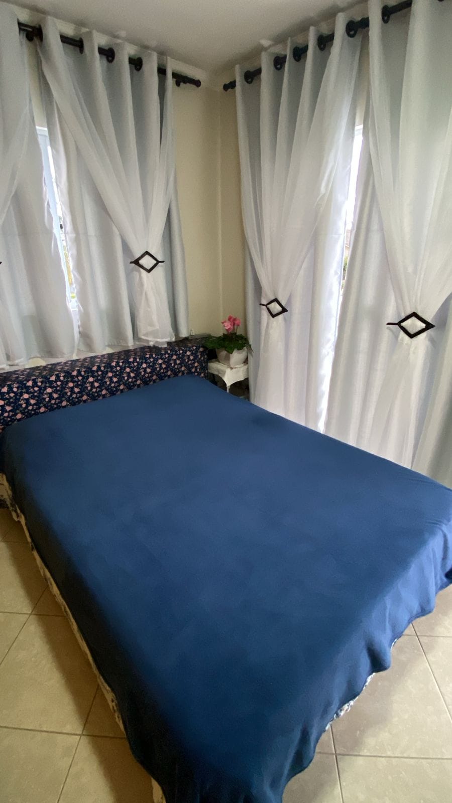 Quarto com cama queen, colchão de molas, cama de solteiro, TV Smart, ventilador, WI-FI, roupas de cama e toalhas. Cozinha, sala e 2 banheiros compartilhados. Localizado perto de mercados, panificadoras, farmácias, Shopping e restaurantes. Perto do Aeroporto, Rodoferroviária e saídas para as praias do PR e SC. Bairro tranquilo e silencioso. Rua calma de pouco movimento onde pode estacionar seu veículo. Aproveite ficando neste espaço charmoso da querida e bela Curitiba