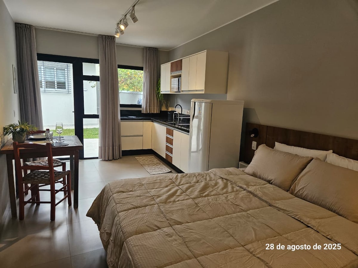 Studio colado na Ópera de Arame com acomodação para até 5 pessoas. Local tranquilo, área verde, pet friendly, ao lado do segundo ponto turístico mais visitado de Curitiba. Cozinha, espaço para trabalho e internet alta velocidade equipam nosso espaço, além de outras comodidades. Ideal para descansar com tranquilidade, além de ser o melhor e mais próximo local para quem vai a Shows e Eventos no Parque das Pedreiras. Mercado, panificadora, farmácia e restaurantes muito próximos.