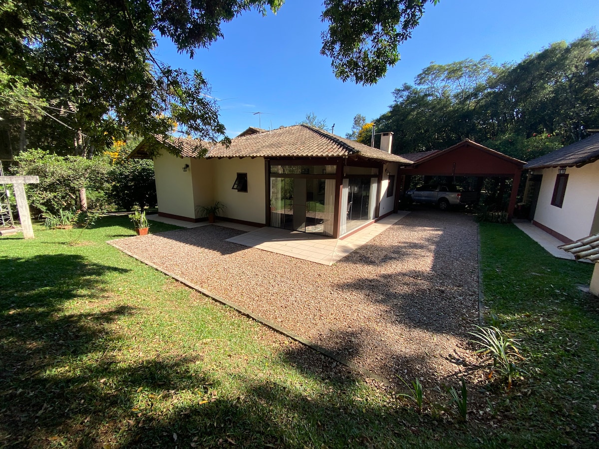 A Casa está inserida em uma grande área cercada em meio à natureza .Oferecemos trilhas para curtas caminhadas, que desembocam em um lago e local com mata preservada e, o canto de diversas espécies. Ao final de uma tarde ensolarada é possível subir no ponto mais alto e receber da natureza um magnífico PÔR DO SOL.Estamos em uma zona rural, mas à 7km do bairro italiano de Santa Felicidade,onde encontram-se vinícolas,restaurantes e diversos comércios. Temos piscina,campo de futebol e estacionamento.