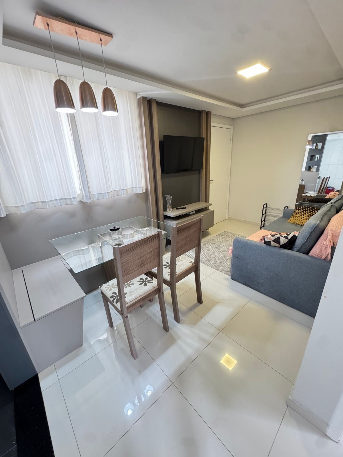 This modern apartment is located in one of the noble areas of Curitiba in the Bacacheri neighborhood, as well as being next to the food market Cadore and close to the National Supermarket, Banks, Egyptian Museum, Parks, Gym, among others. The apartment has a unique decoration with items that will make your stay even more special. The condominium has a mini market, covered garage, shared areas such as swimming pool, gym, gourmet area, pet space, etc. Come and check!