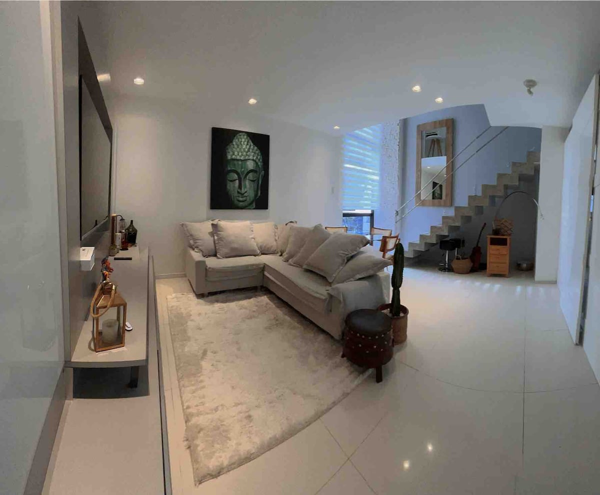 Loft / Estúdio localizado no melhor do Ecoville, o Bairro mais sofisticado e desejado de Curitiba. Cuidadosamente decorado e planejado para oferecer praticidade e comodidade ao hóspede . O Espaço conta com pequena cozinha com todos os itens necessários para refeições rápidas. Roupas de cama, toalhas, secador de cabelo, ferro de passar etc. Areas comuns: Lavanderia, Coworking, churrasqueira, Cozinha etc. 1 Vaga garagem inclusa. Restaurante, panificadora e Farmácia a menos de 50 metros.