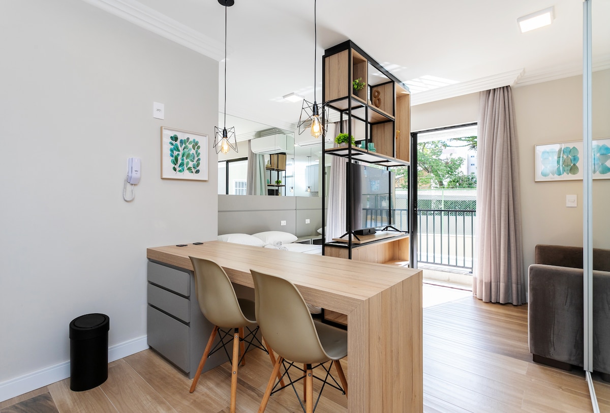 平均评分 5 分(满分 5 分),共 10 条评价现代Loft公寓,位于巴特尔(Batel),配备55英寸电视,靠近日本广场