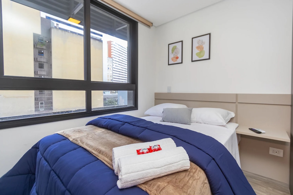 Studio moderno, no Centro Cívico — ideal para quem busca conforto, praticidade e excelente localização em Ctba. Ambiente climatizado, cozinha equipada e Smart TV — perfeito para lazer ou trabalho. 🛏️ Acomoda com conforto até 4 pessoas, roupa de cama de qualidade. • Piscina aquecida • Academia • Sauna • Terraço • Lavanderia (paga) 🚗 Estacionamento disponível no prédio, valor R$ 35 por diária Pago via PIX ao anfitrião.
