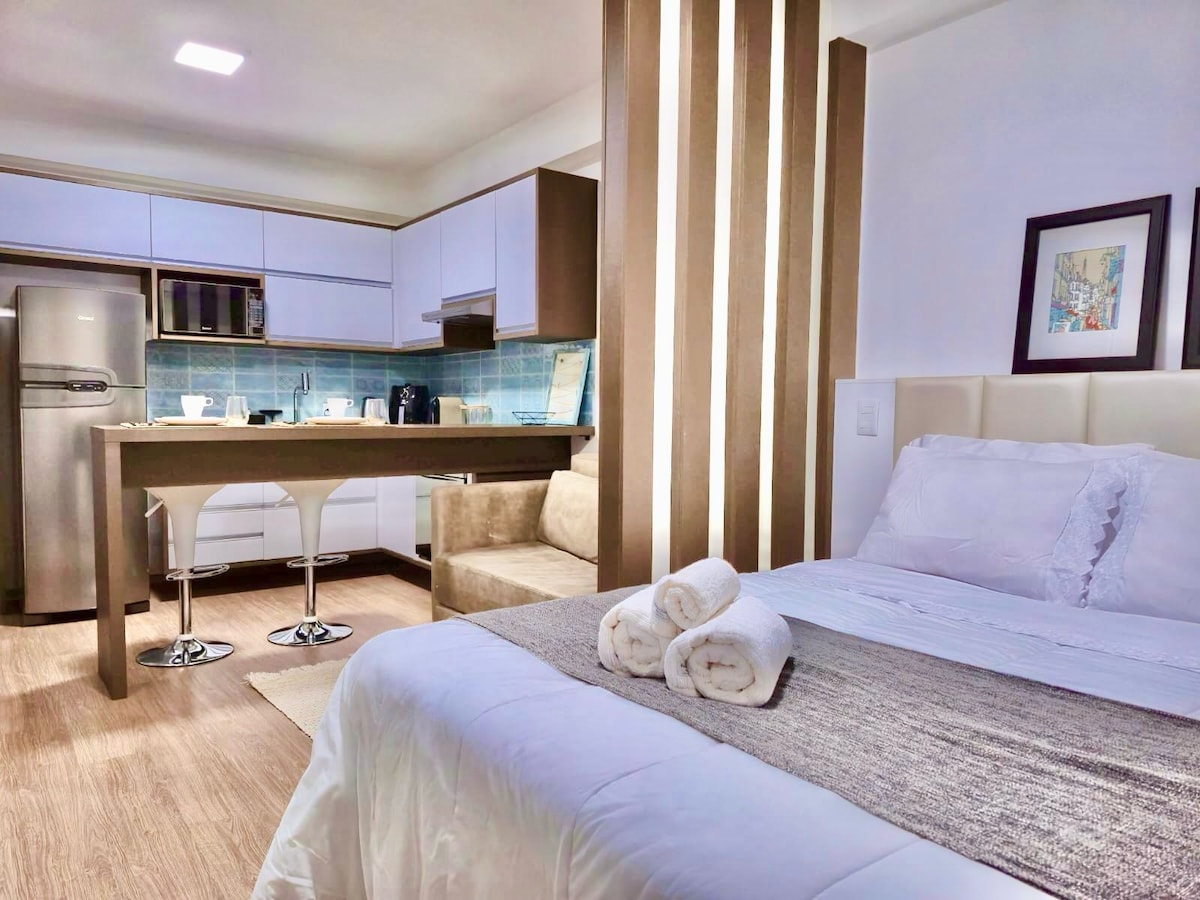 精心策划的单间公寓,位于库里蒂巴购物中心对面