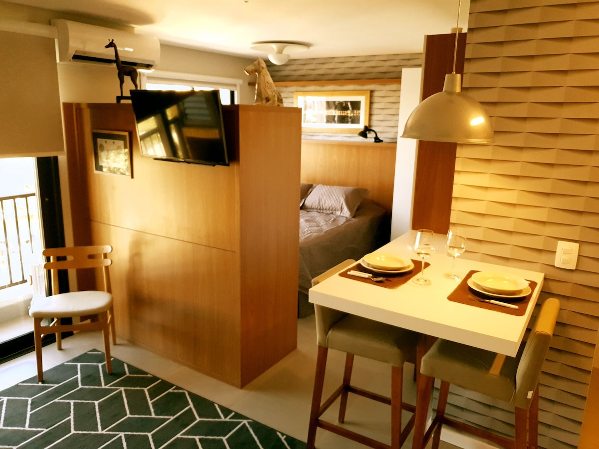 Apartamento muito agradável, claro, ventilado e ensolarado ma parte da manhã. Vista ampla. Bem eqyipado paea o dia-dia, colchao confortável e agua aquecida por aquecedor a gás.