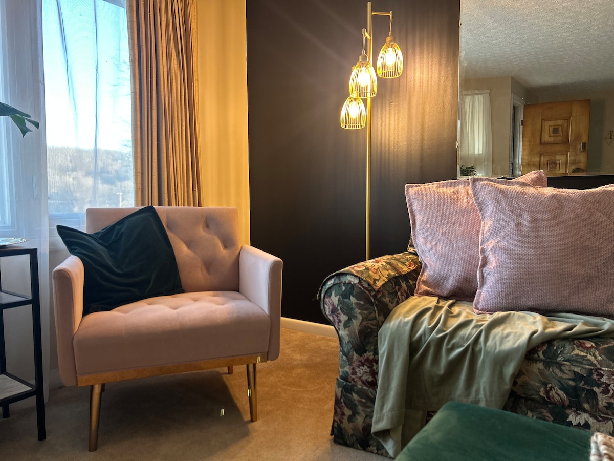 Experience a sophisticated and cozy retreat in the heart of downtown, where mid-century modern elegance meets contemporary comfort. This stylish second-story getaway boasts three bedrooms, two baths, high-end finishes, and city views. Perfect for out-of-town wedding guests! Its prime location offers walkable access to various dining, shopping, and entertainment options. Whether for a celebration or a relaxing escape, this refined urban haven is the perfect stay for any occasion!
