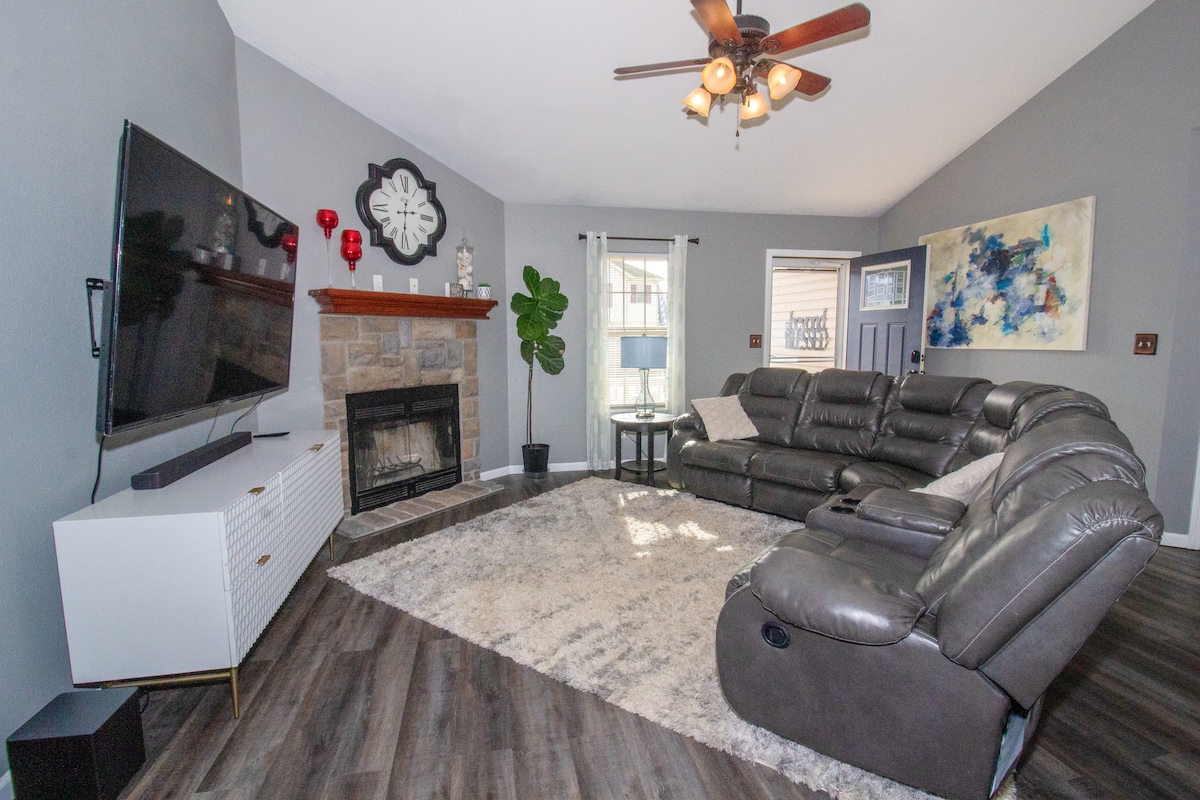 Experience the best of the Ozarks with a stay at this charming vacation rental home. This warm retreat boasts a large outdoor rec area, a well-appointed interior, a fully equipped kitchen with complimentary coffee & tea, and is a short 10-12 minute drive to Ft. Leonard Wood. In the heart of Pulaski County, this lodge is minutes away from the Roubidoux park/riverside walking trails, Old Stagecoach Stop, Hoppers Pub and Frog Rock. Head back home for an evening soak in the hot tub under the stars.