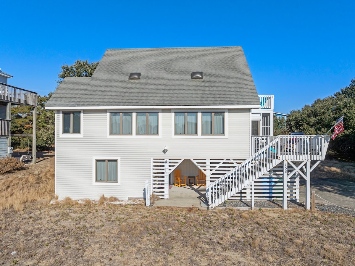 Newly renovated! Enjoy a stylish experience at this centrally-located place. If you're looking for an amazing semi-oceanfront home in the heart of the Outer Banks, Salty Sunrise is the perfect place for your next beach vacation. This 3-Bedroom, 2 Bathroom home offers unbelievable views of the ocean and easy access to both the Byrd St and the Fonck Street Beach Accesses! Spend your OBX vacation enjoying warm cups of coffee out on the upper or lower decks as you watch the sunrise over the ocean.