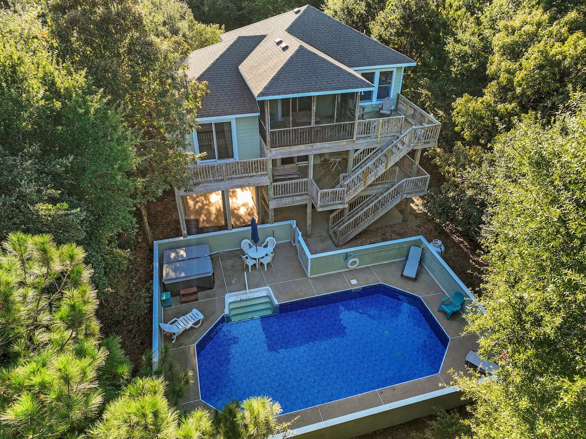 Sunrise Surf House is right across the street from the ocean, with great views! The access to the ocean is only 2 houses away. Our large pool will have free heat starting the end of April -mid October. . We also have a 6 person hot tub on the pool deck, closed Jan/Feb. Family and dog friendly! (See House Rules). We are centrally located 3 houses away from Southern Shores Crossing Shopping Center, where you can walk to dining, pizza, ice cream, shopping, and even an escape room.