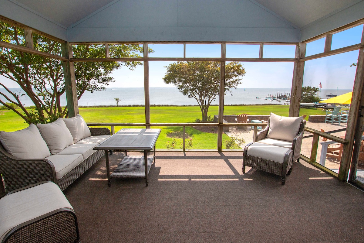 Nestled in a peaceful bend of the Pasquotank River this magical setting will have you feeling the rhythm of the river & its golden hour glow! It boasts a massive waterfront screened porch with its own fireplace & dining area. A private dock lounge area too! Carefully curated antiques tell a story of timeless elegance blended in modern luxury ideal for peaceful mornings & restful nights. Enjoy fishing, kayaking, boating, a romantic weekend, stargazing, creative retreat, or a fun family getaway!