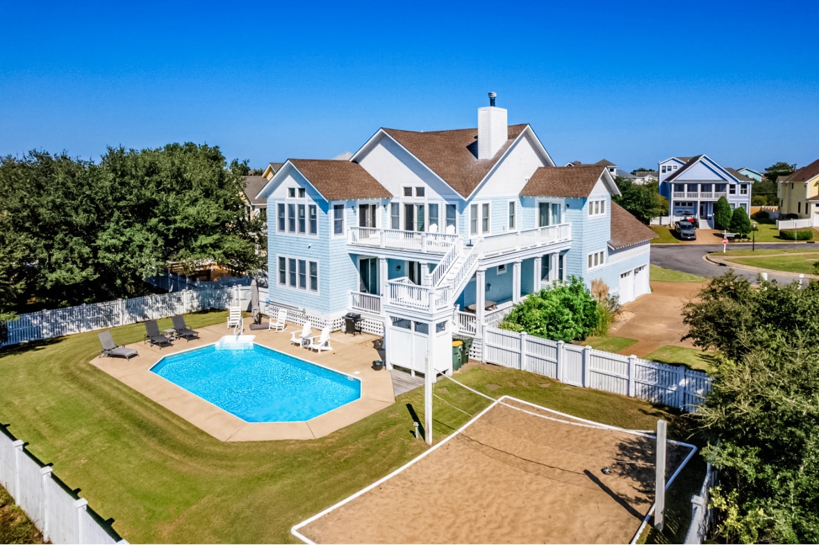 Corolla Luxury Rentals presents On Point! Nestled in the exclusive community - Hammocks Reserve Collection at The Currituck Club in Corolla. Come together in this spacious home, perfect for fun and relaxation. ~ 6 Bedroom, 6 Bathroom & Sleeps 12! ~ Fully loaded kitchen ~ Private Pool ~ Linens & towels inc. ~ Game Room w/ Arcade & Bar ~ Gas Grill ~ Private Volleyball court! ~ Room for 6 cars to park ~ Golf cart friendly ~ Great family community ~ Community amenities included