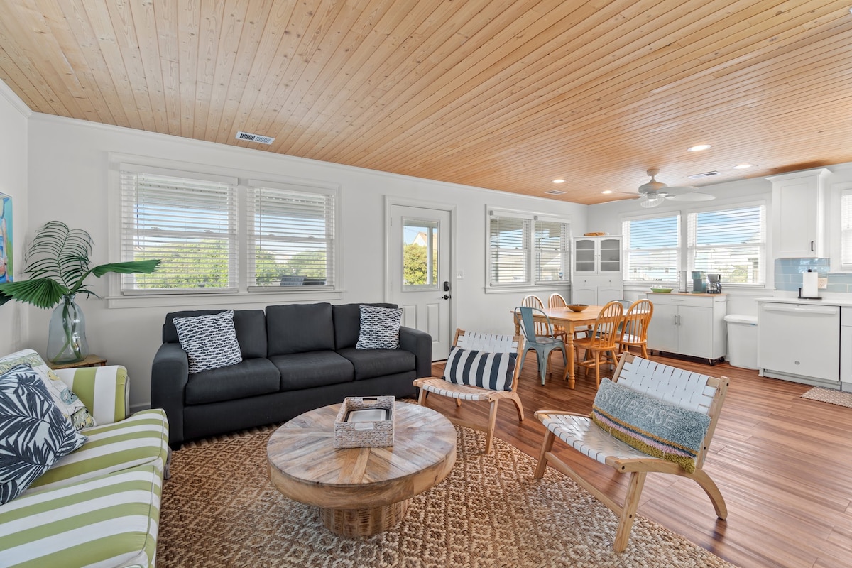 "Salt Suite Cottage" Kick back and relax in this calm, stylish space. Our small, unique home is perfectly located to show the various landscapes that this area has to offer. The cottage allows you to rest your head in the quiet wooded area of Kitty Hawk Village after spending a busy day at the beach. This new construction is about 550 sq. ft. of private, spacious, living space with a hot tub and patio overlooking the greenery behind the property. It is a luxury! *2 guests only, No visitors