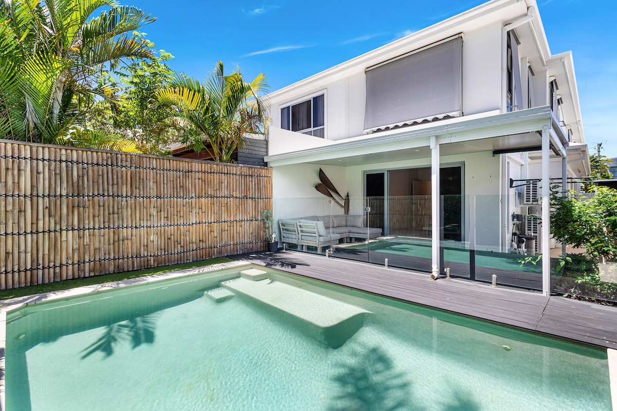 Exceptional location patrolled beach and walking path (stretches from Currumbin-Cooloongatta) one end of the street and Tugun Village the other. Avoid the chaos of units and shared facilities, lap in the luxury of your own space, huge grassed backyard for the kids to play safely blessed with a beautiful blue magnesium pool, paved surrounds and gardens. Stroll to cafes bars restaurants surf club markets grocers, the list goes on. READ “The Space” & “Other details to note” below.