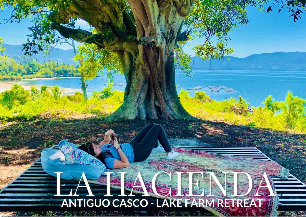 3 renovated rooms, old hacienda farm house and stables, lake access, private forest trail. A) All bedrooms have bathrooms. B) Casco hall: with television, dining area, surrounding balconies and hammocks. C) Daybed, (bajo la veranera Rosa) D) Barbacoa / Barbecue E) Yoga terrace F) Garden sitting areas G) Amate lookout platforms H) Massage services $25/h I) 2 Jacuzzi pools