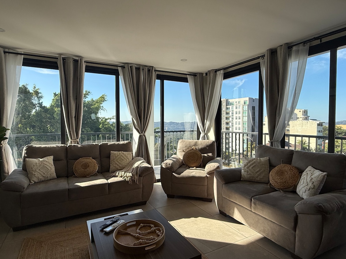 Cozy, spacious and modern apartment in a central area of ​​the capital. It has a beautiful view of the city, since the apartment is on level 8. It is very well equipped with everything you need for a pleasant stay. With fast Wifi, cable TV, hot water, air conditioning, kitchen with everything you need. Pool and many amenities Very well located, less than 5 minutes from the largest shopping centers, restaurants and bars. Safe and exclusive area