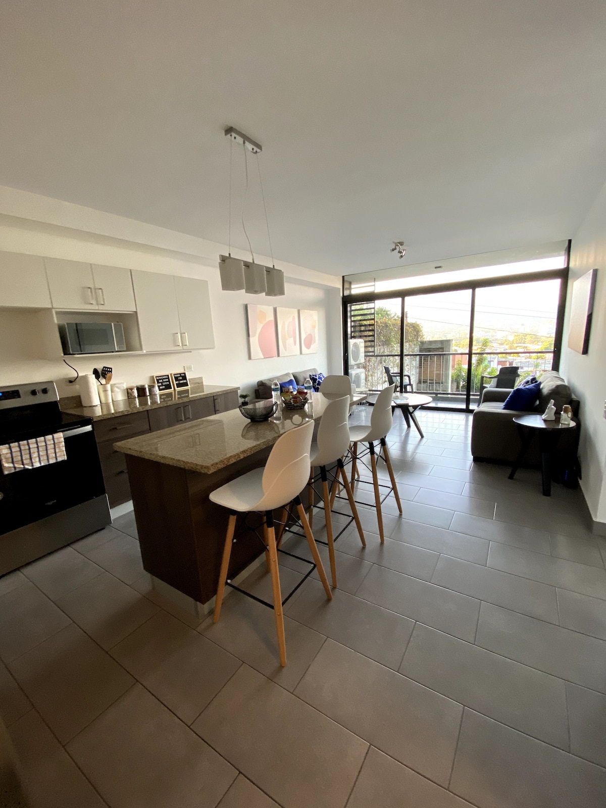 Apartamento de dos habitaciones - Totalmente Amueblado y Equipado con hermosa Vista al volcan. El Apartamento esta ubicado en una de las zonas mas seguras de Santa Tecla, cuenta con Rooftop, Canchas y Amplias Zonas verdes. A Media hora del puerto de la libertad, a 15 minutos del volcan de San salvador. Contamos con 2 Habitaciones con A/C + Tv con cable en cada habitación - Sala Familiar con Tv - WiFi - Cocina totalmente Equipada -Lavadora y secadora - Terraza con Vistas al Volcán.