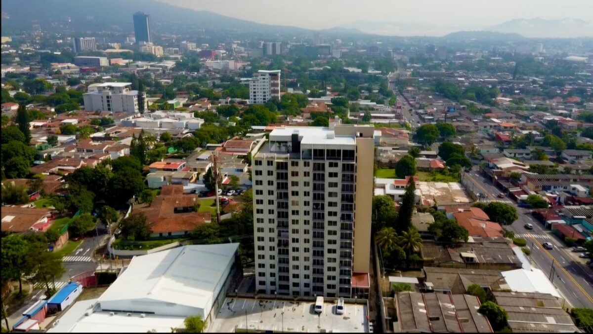 Welcome to an apartment with a modern and functional concept, for an incredible stay. Located in one of the safest areas of the capital. The tower has a swimming pool, gym, social areas, playroom and rooftop available for the guest (some with prior reservation). The apartment is located between 5 to 10 minutes from the best shopping centers, restaurants and exclusive bars. The apartment has an unbeatable view of the volcano and the city of San Salvador. I have a very easy self check-in mechanism
