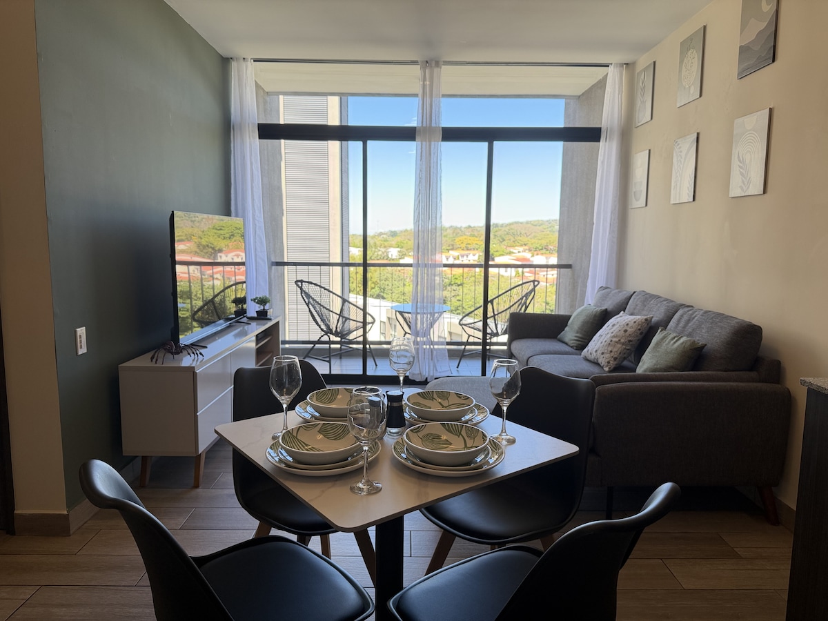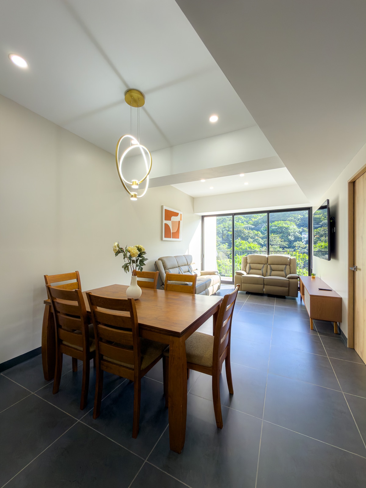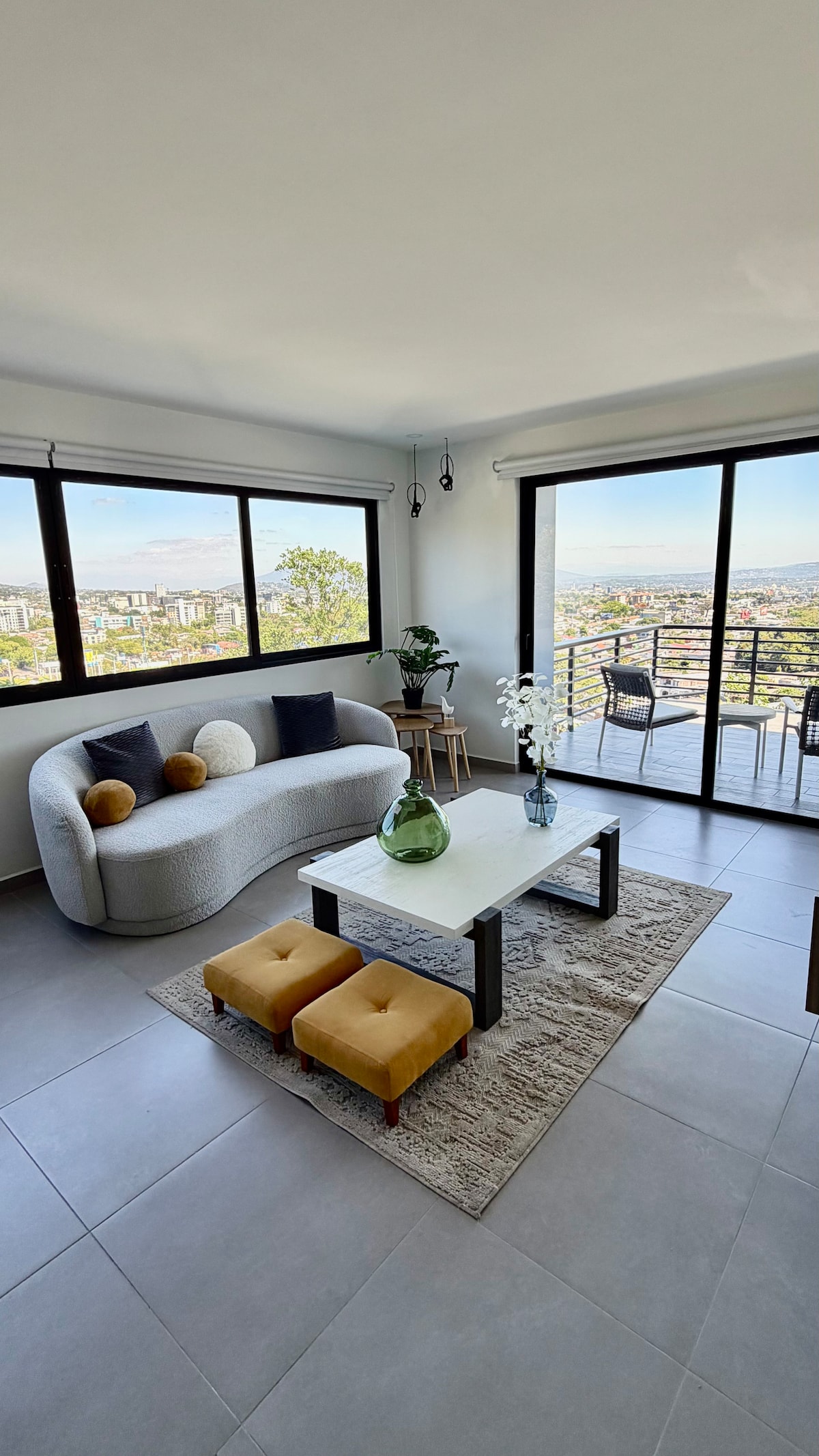 ✨ AIR CONDITIONING IN LIVING ROOM ✨ Enjoy a comfortable stay in a new and private tower with all the modern amenities. This spacious and bright apartment feels just like home. From the balcony, take in a stunning view of San Salvador city and the volcano, especially at sunset. Located in an exclusive and safe area, it features a modern lighting system designed for your comfort and relaxation.