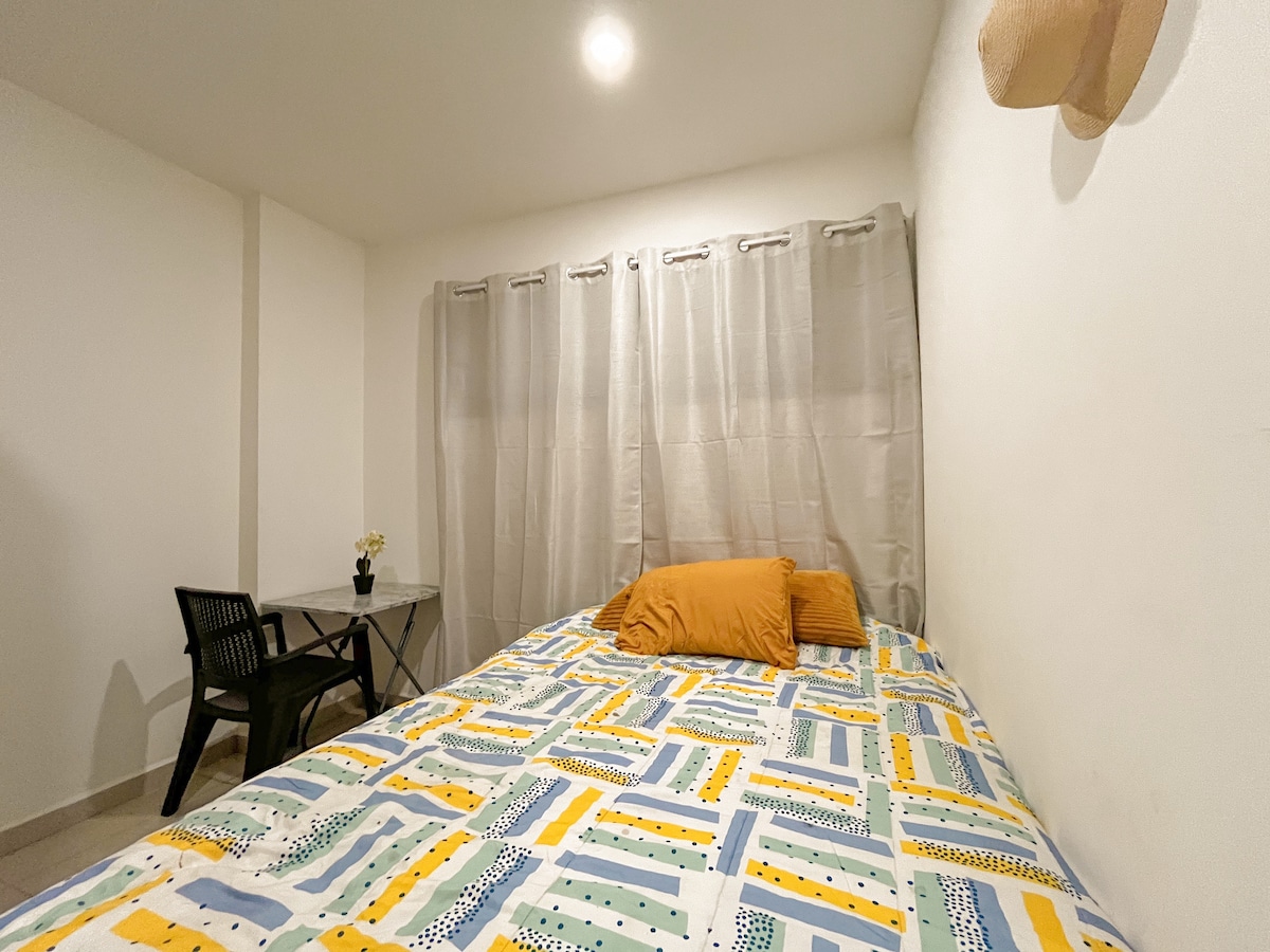 Reserva tu refugio urbano hoy mismo: Este moderno apartamento se reserva rápido, ¡no pierdas la oportunidad CONFORTABLE Apartamento con una ubicación ideal, cerca de centro comercial, restaurantes, entrenamiento, etc. nuestro espacio es ideal para parejas o una sola persona, con opción de acomodar dos personas mas por un costo adicional Tiene A/C, Internet, Cable, cocina completa, una cama, desayunador, baño con agua caliente, lavadora. Será un placer atenderlos!
