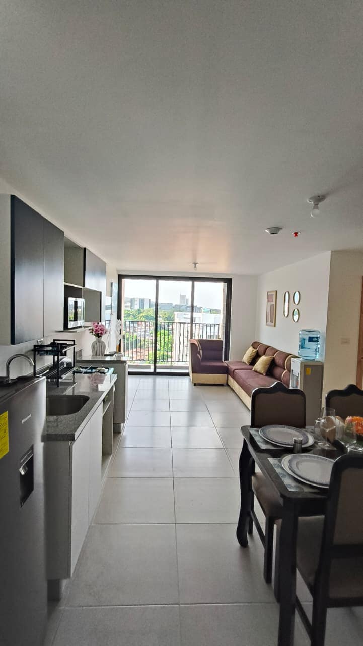 Moderno Apartamento, acceso a mini gimnasio y Work Cube, ubicado en zona residencial segura, a 45 minutos del aeropuerto, 15 minutos de los principales centros comerciales. A sus alrededores fácil acceso a supermercados, farmacias, Estadio Cuscatlán, servicios de bus, restaurantes, etc. Ubicado en el cuarto nivel, cuenta con A/C, Smart TV 55 pulgadas, Wifi 50 mg, cocina, baño privado, pequeño espacio de escritorio, área de lavado, 1 parqueo privado y entrada con control remoto.