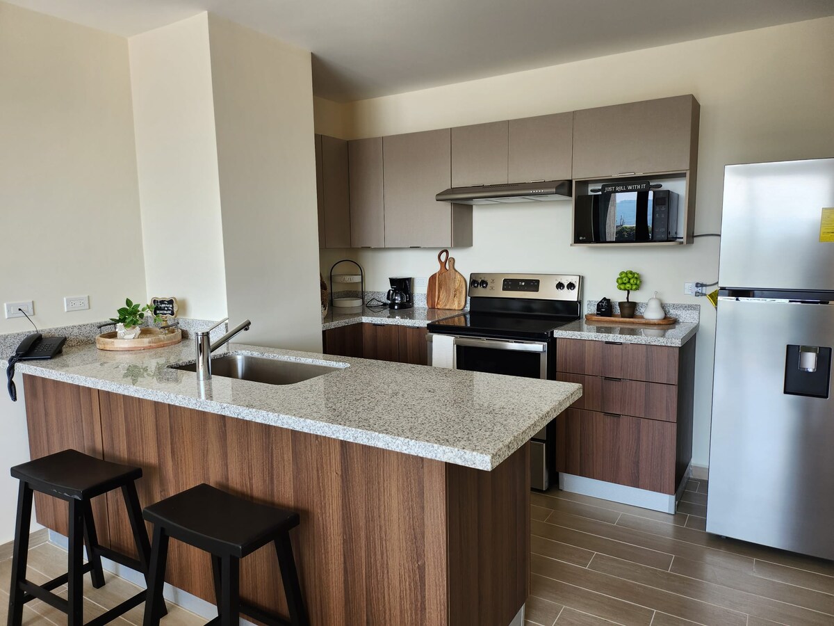 Welcome to Your Home Away from Home Enjoy this wonderful apartment located in a new and modern building, in a safe and central area. You will enjoy stunning views of the mountain range. Apartment Features: 2 Cozy Bedrooms: Each bedroom is equipped with a comfortable Queen bed and air conditioning to ensure your comfort. 2 Full Bathrooms with Hot Water Fully Equipped Kitchen Private Terrace High-Speed Internet Workspace Access to pool and gym