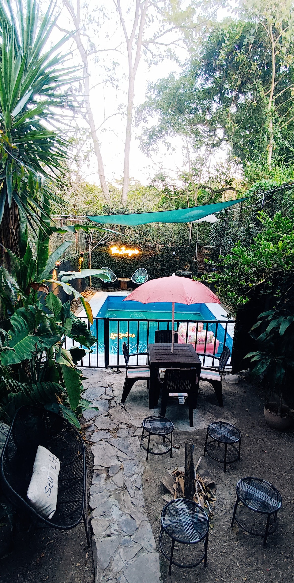 Un lugar en medio de la naturaleza para gozar en grande con una amplia piscina para celebrar. Tiene área para cocinar adentro de la casa y otra al aire libre, cuenta con un baño amplio principal moderno adentro de la casa. El espacio es para 6 hasta 10 personas. al llegar a la propiedad el encargado está disponible para ayudar, el y su familia duermen en una casa completamente separada de la casa principal respetando la privacidad de los ocupantes. Starlink Wifi is on the property