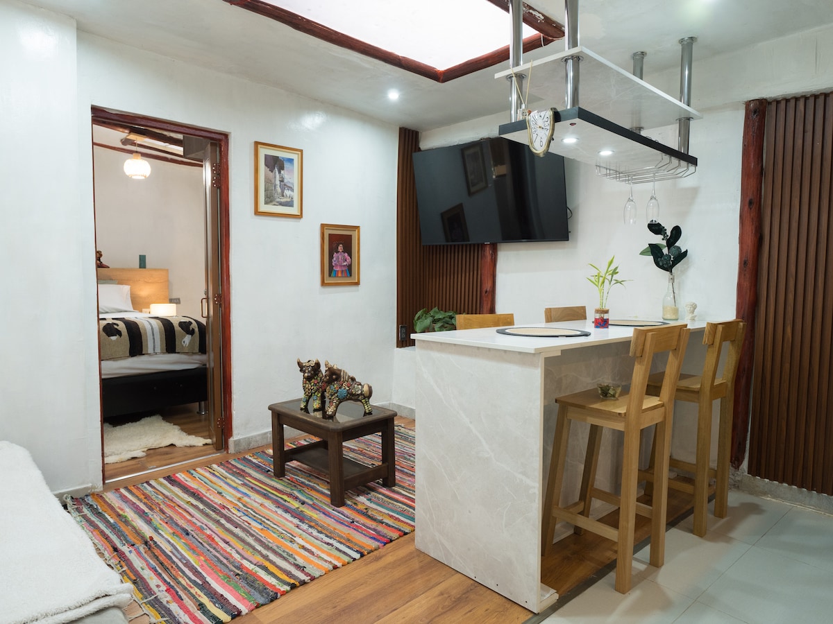 A fully furnished modern studio with all the comforts and privacy of home, whilst offering a panoramic view of the beautiful Cusco. The unit is fully-equipped with soundproof doors and windows, heavily-insulated walls for added warmth, blackout curtains, consistent gas-powered hot water, strong Wi-Fi and smart TV (Netflix included) to ensure a quality living experience. It takes only 10-15 minutes’ walk to the historic centre. The indoor heating system is also available at an additional cost.